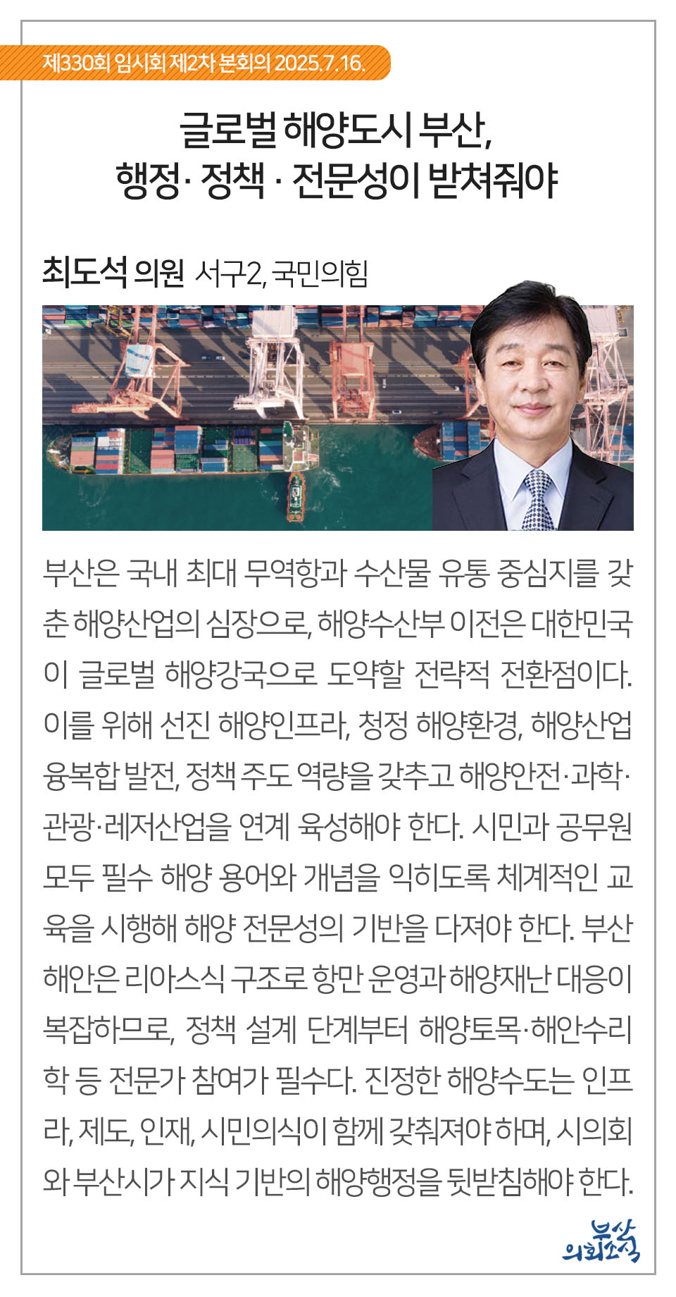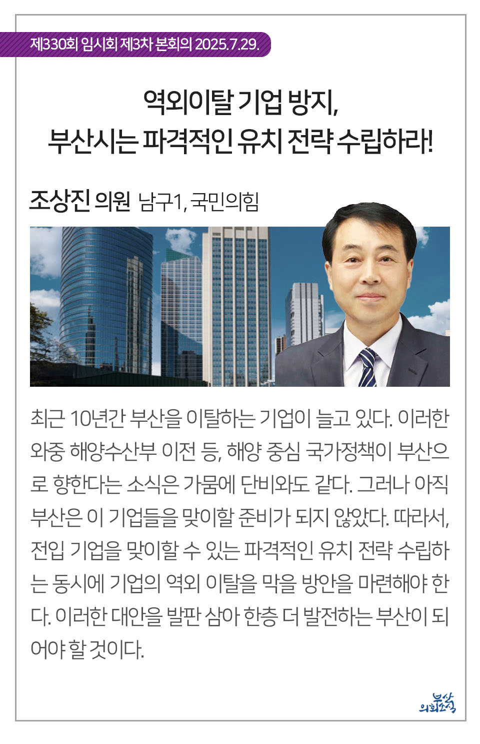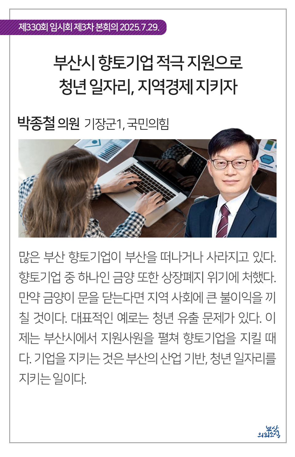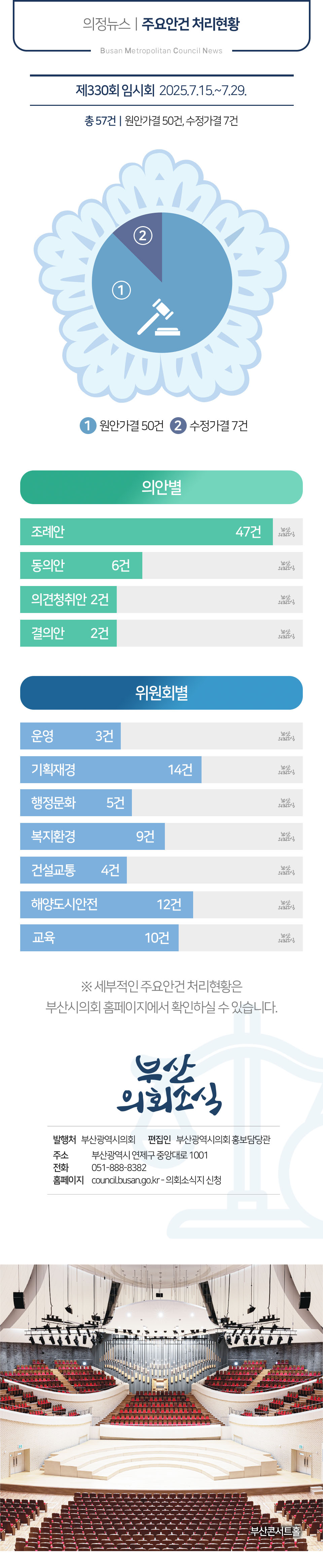 부산광역시의회 제330회 임시회에서 의원 발의되어 가결된 31건의 조례를 알려드립니다.