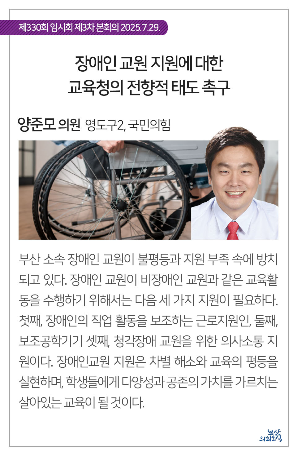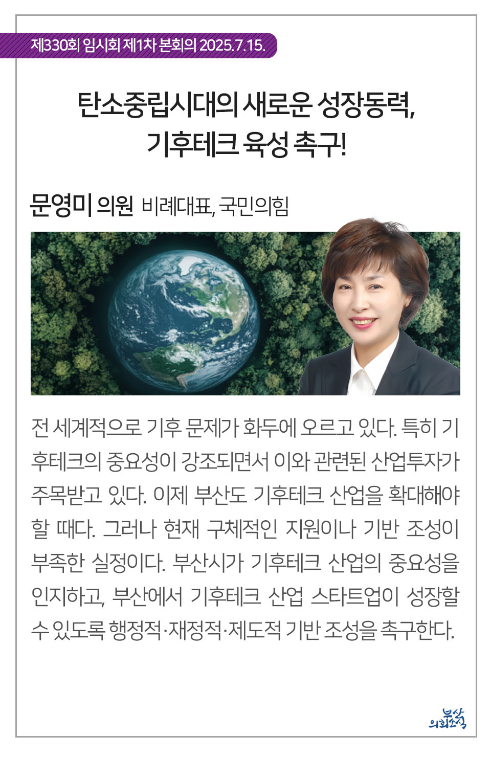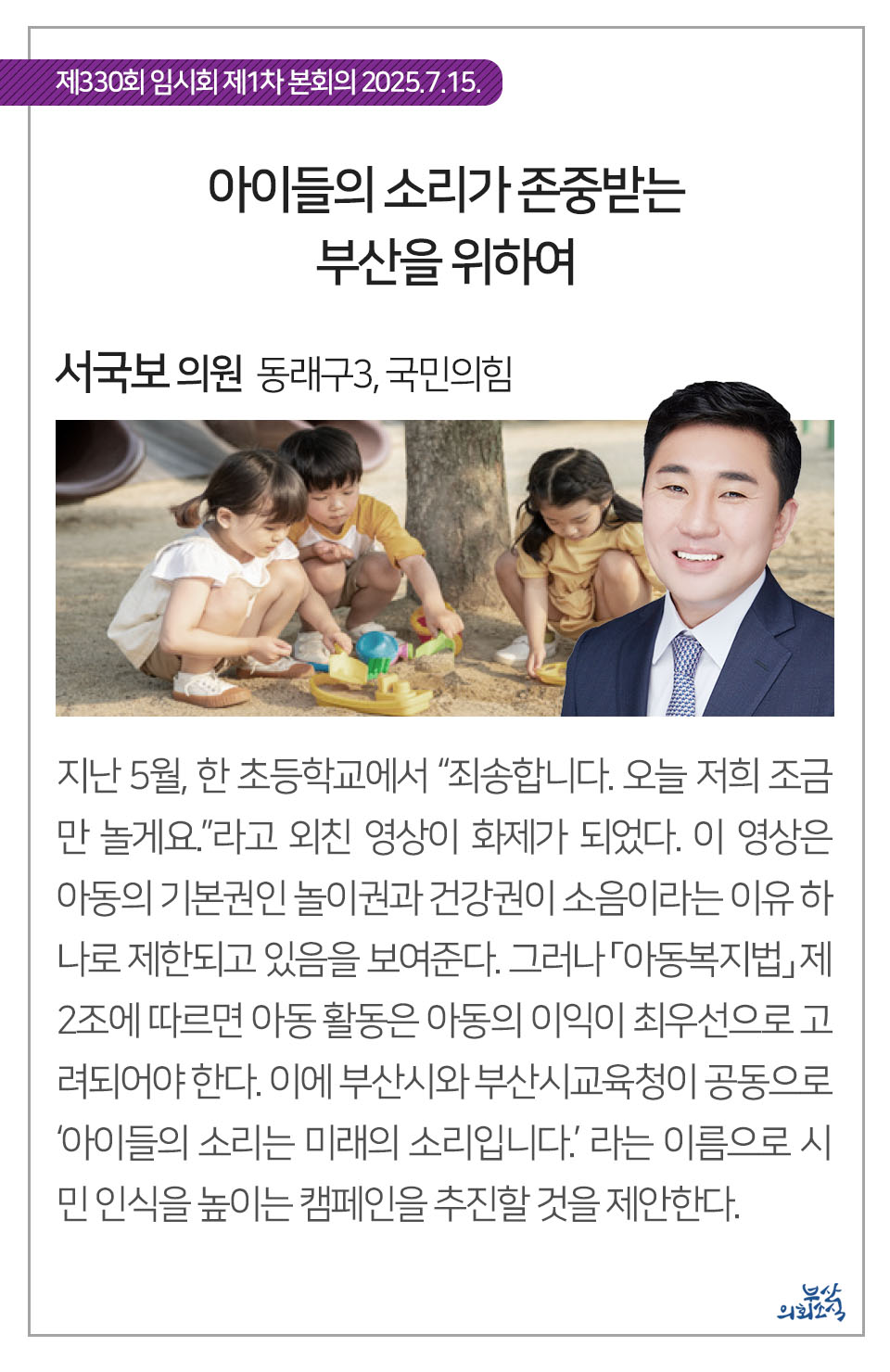 부산광역시의회 제330회 임시회에서 의원 발의되어 가결된 31건의 조례를 알려드립니다.