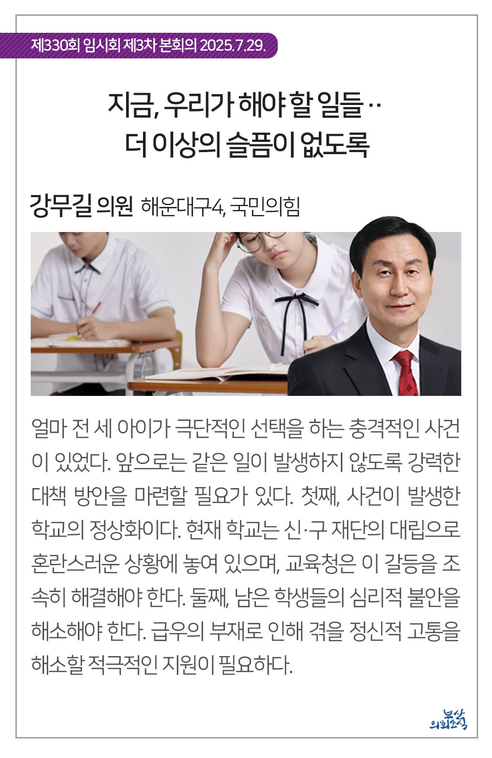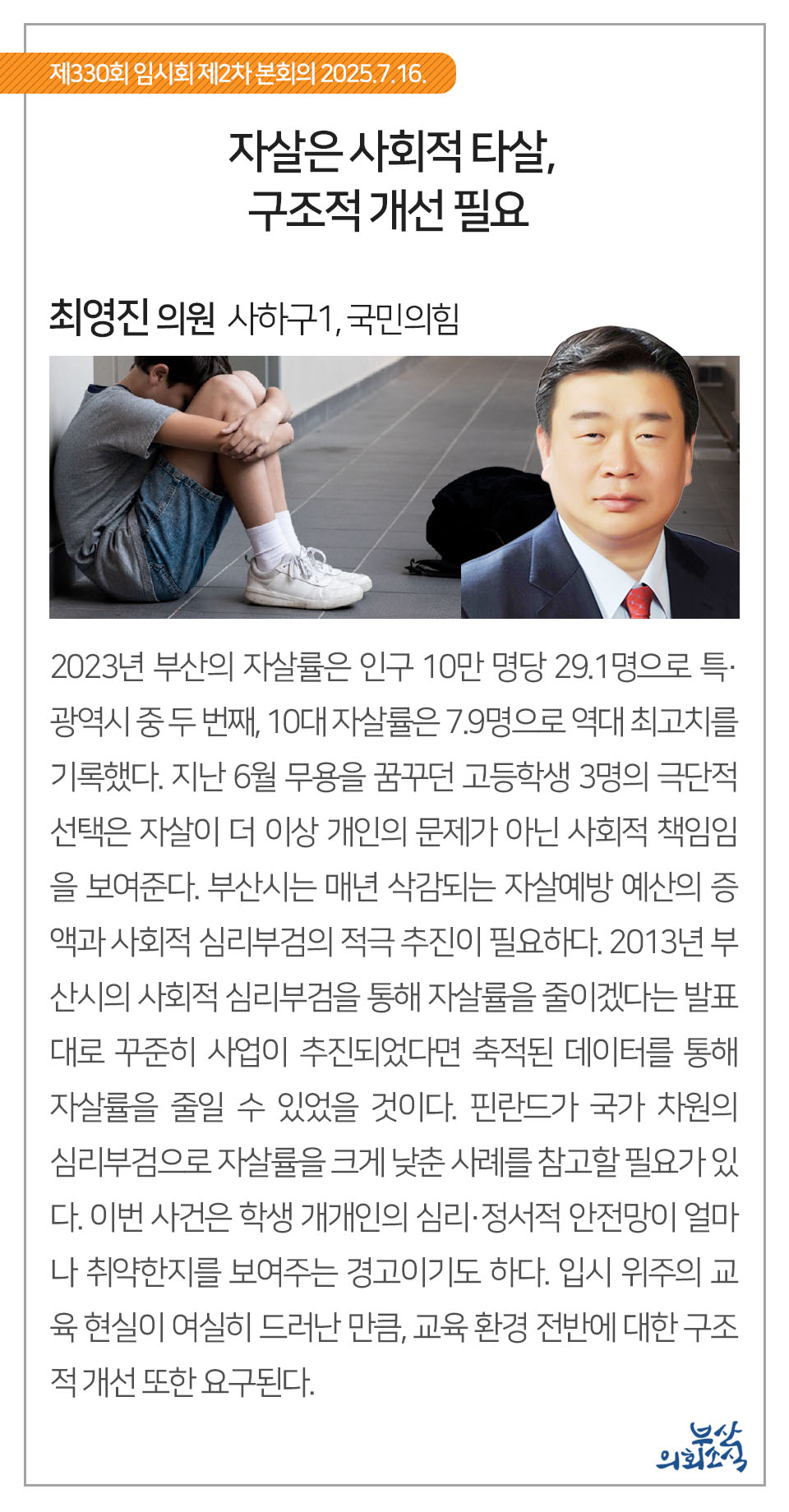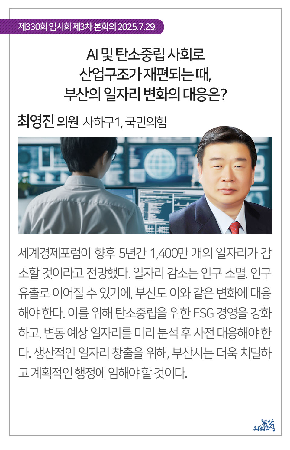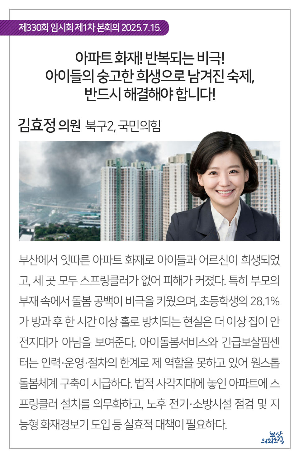 부산광역시의회 제330회 임시회에서 의원 발의되어 가결된 31건의 조례를 알려드립니다.